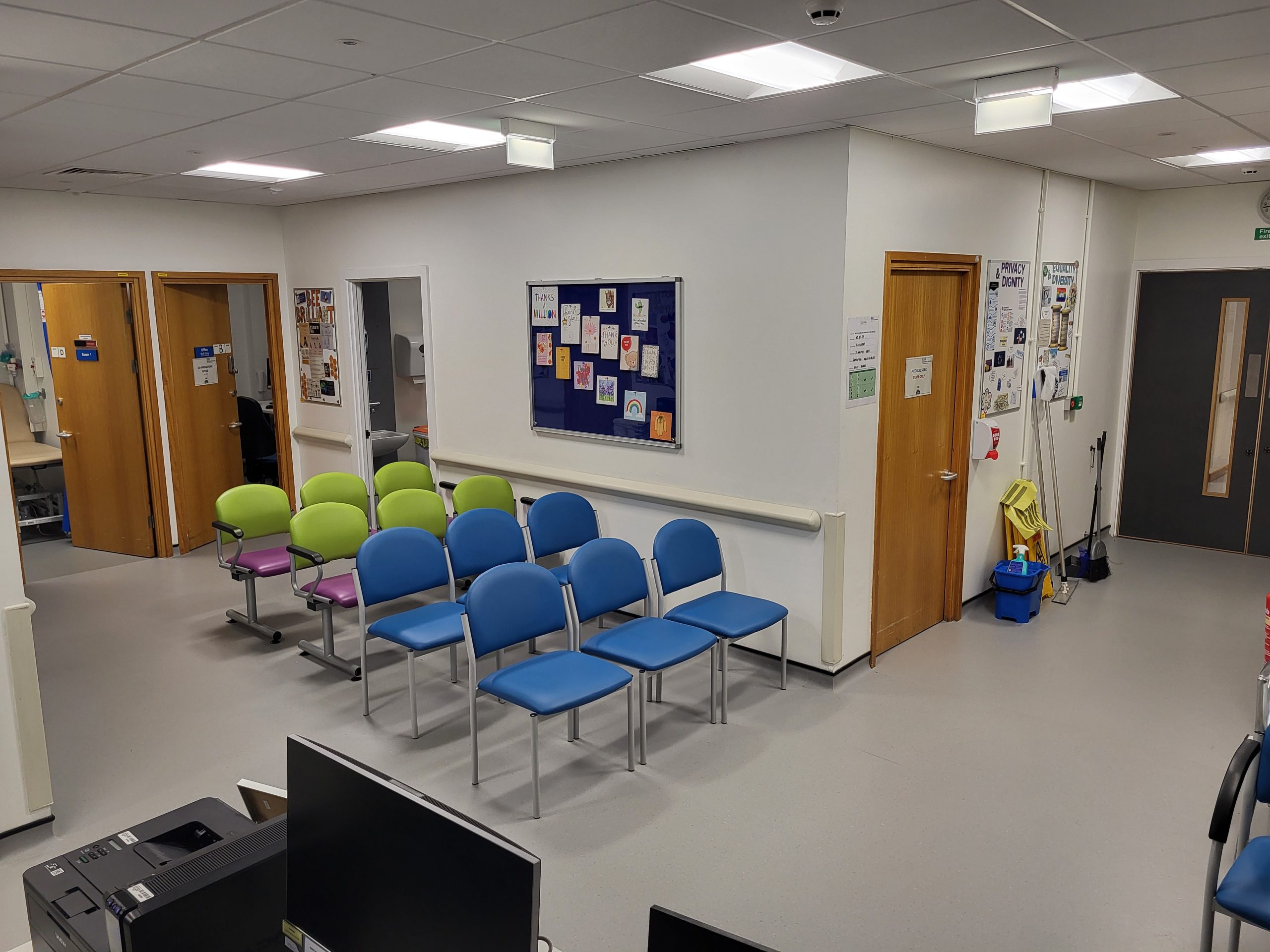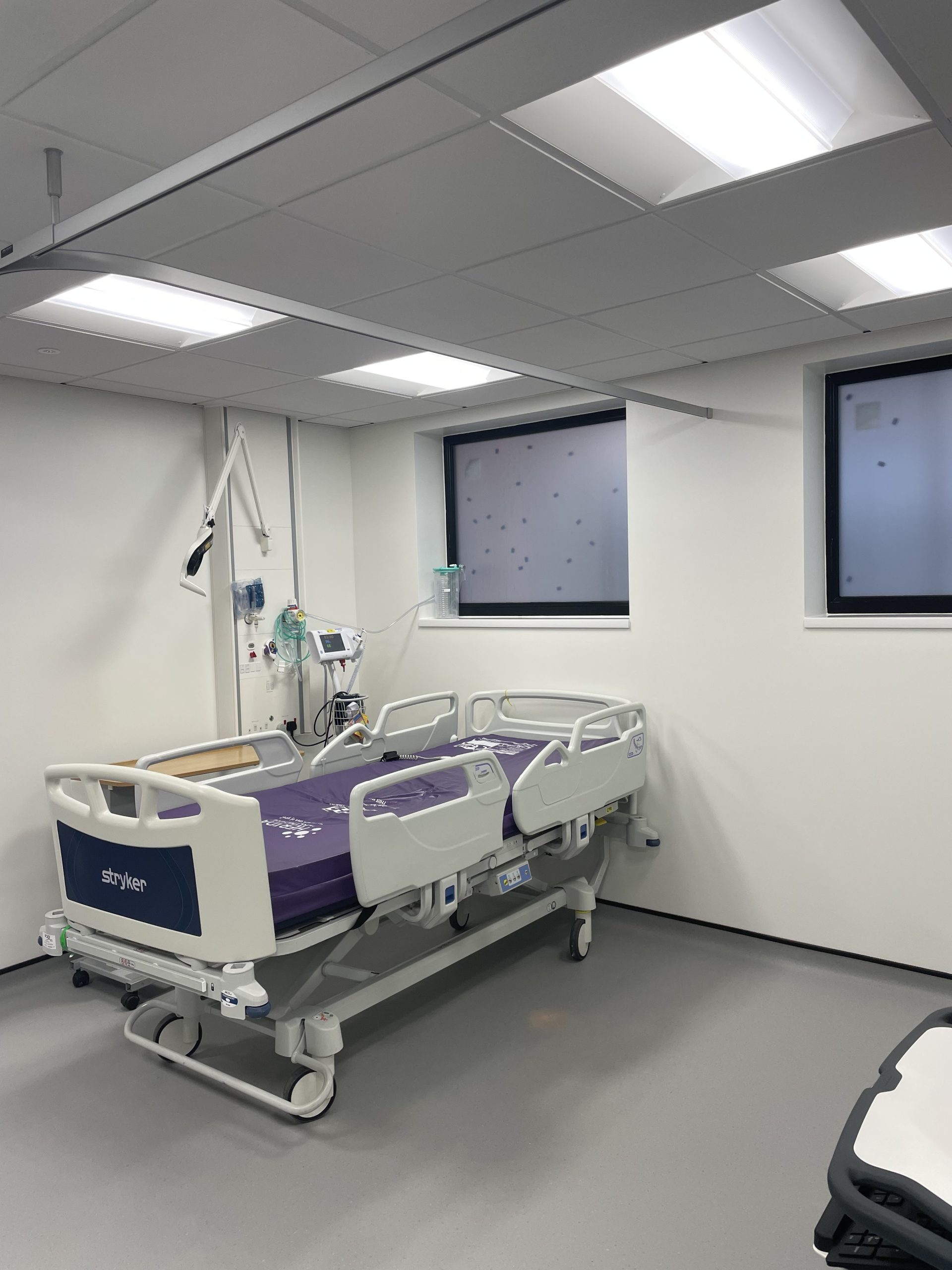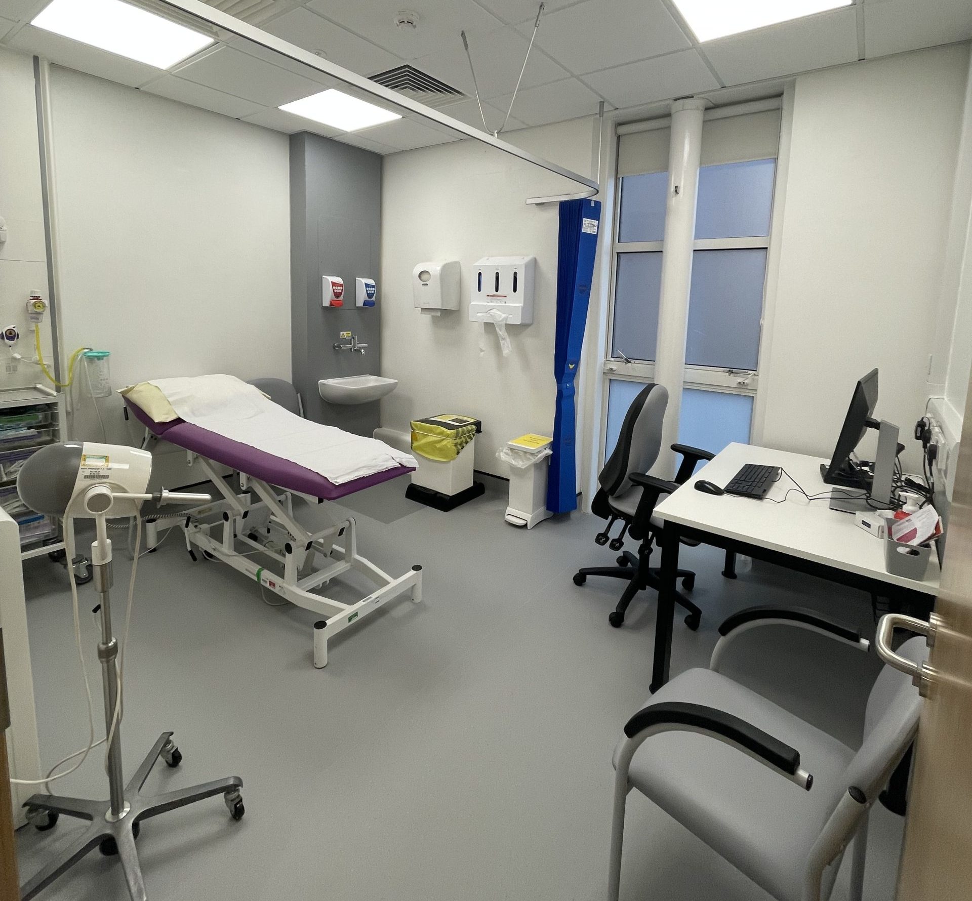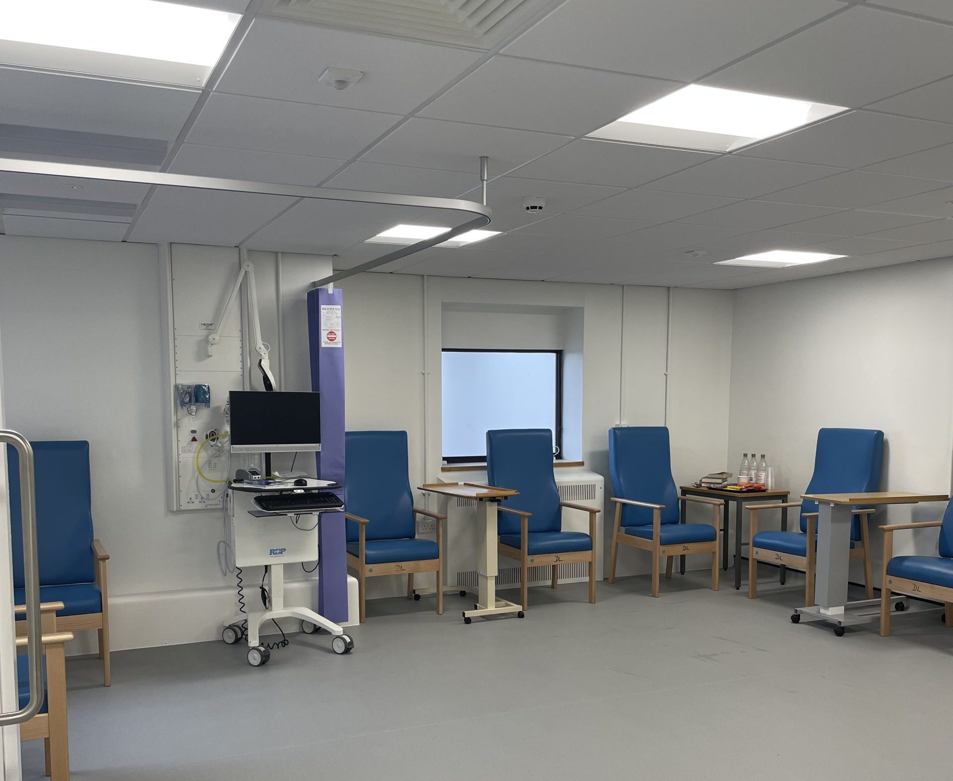 Flooring and damaged ceilings were replaced, decoration was refreshed where necessary, and the ventilation system was upgraded. Furniture, fittings, and specialist equipment such as drug cabinets were also installed.